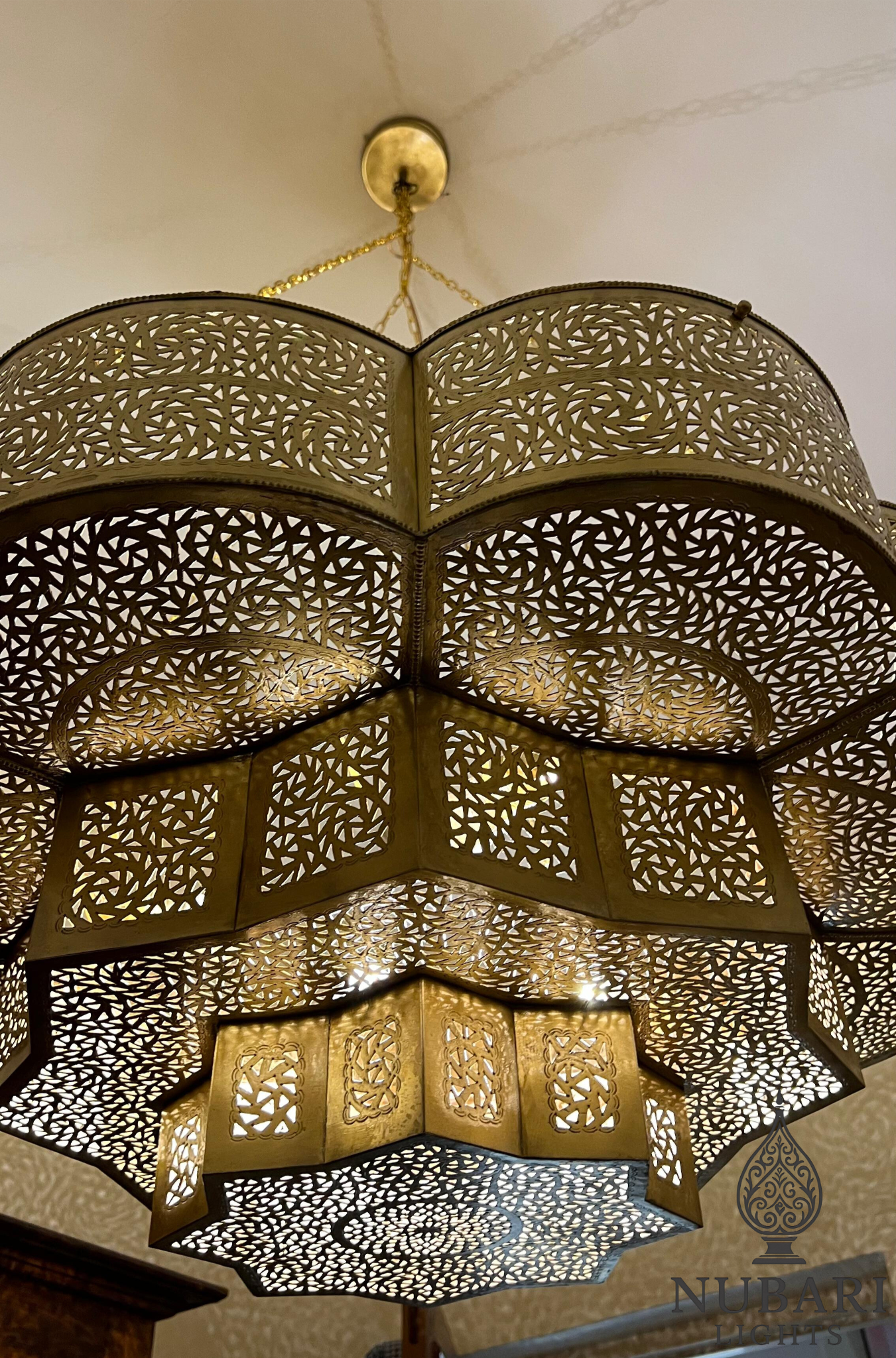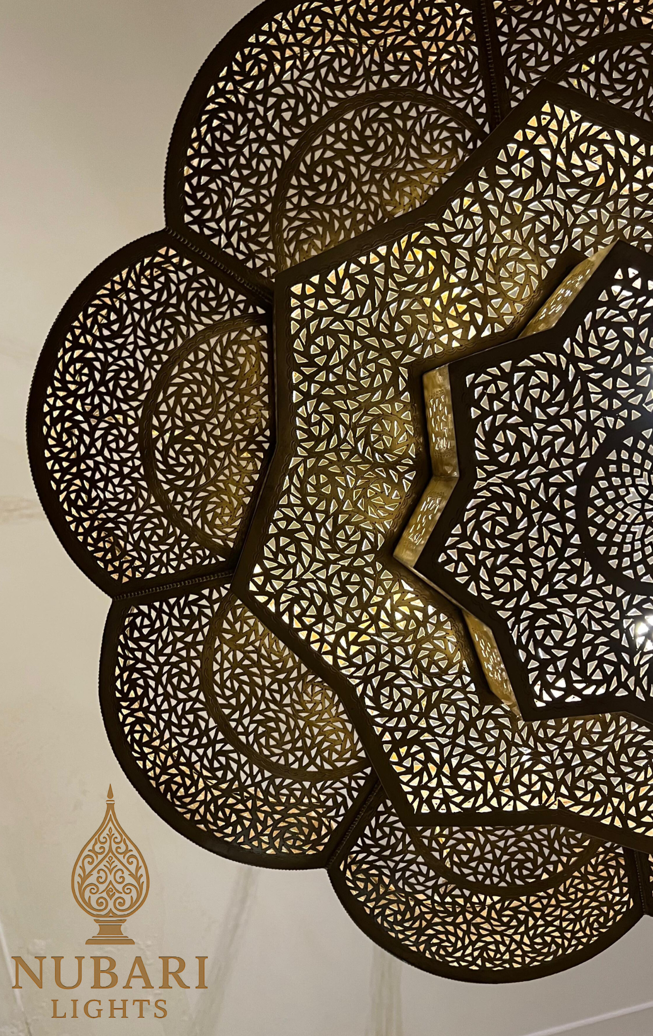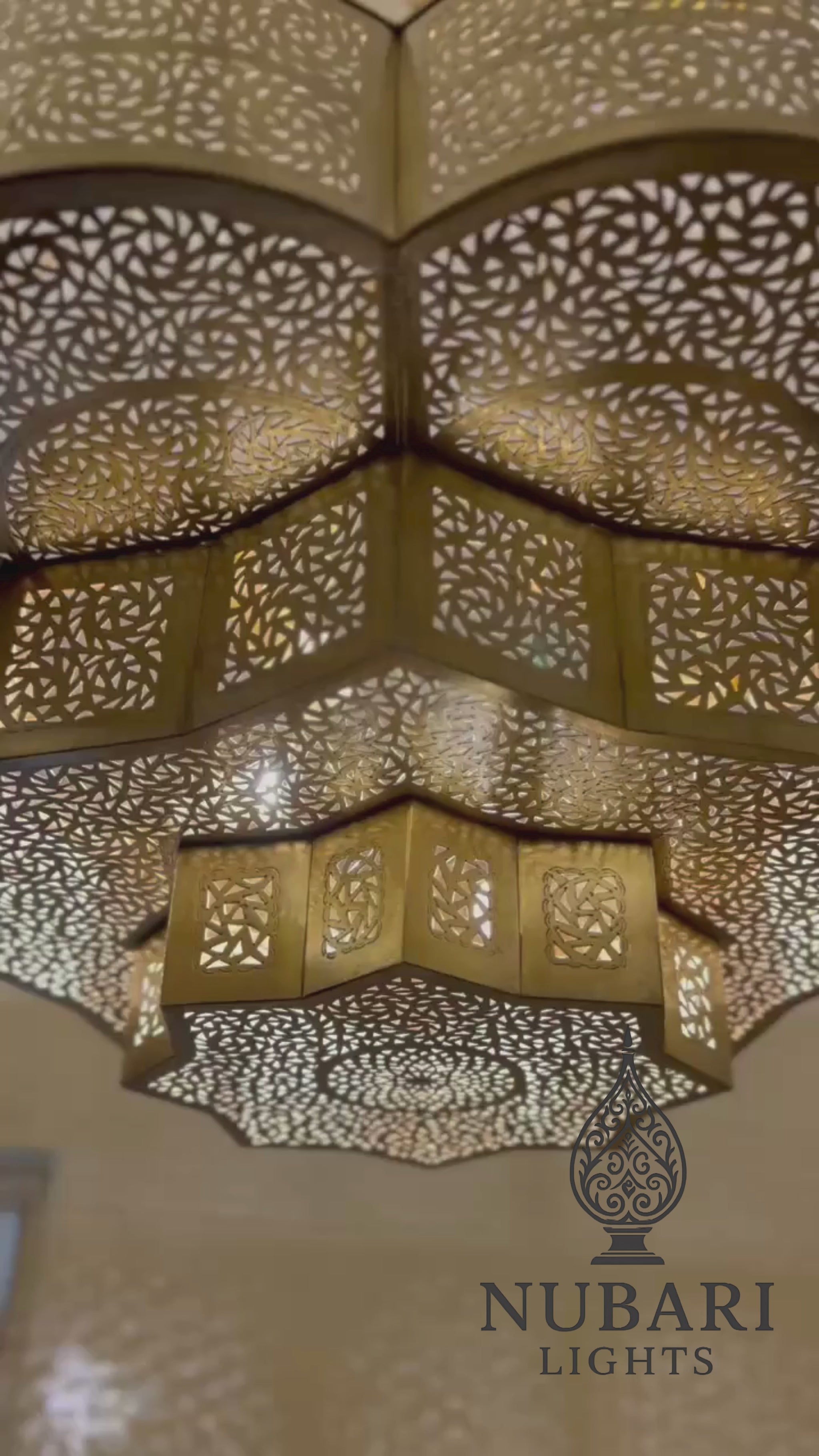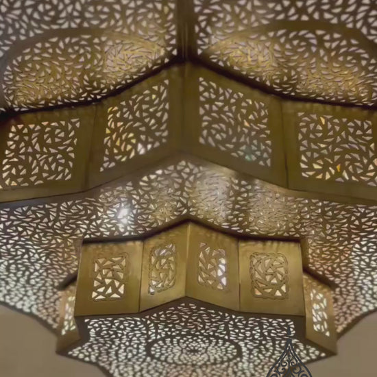 Its geometric pierced design casts warm, intricate shadows that bring a luxurious oriental ambiance to any room. Perfect as a ceiling chandelier, flush mount, or statement lamp, this piece blends traditional Moroccan artistry with modern elegance.