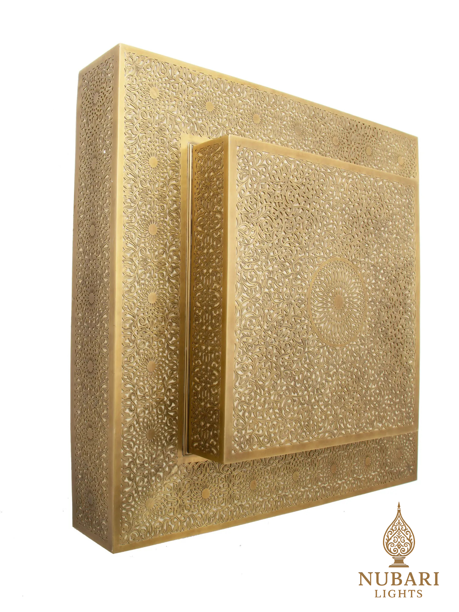 Expertly handmade from 100% solid brass by skilled artisans in Marrakech, this square flush mount fixture provides warm, ambient illumination while adding an elegant cultural touch.