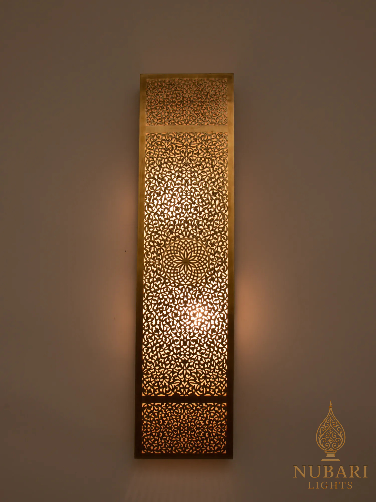 Handmade Moroccan Brass Wall Sconce – Rectangular Pierced Light